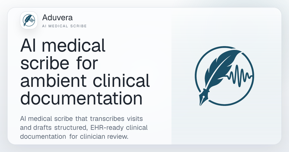 Aduvera is an advanced AI medical scribe designed to streamline clinical workflows. It accurately transcribes patient visits in real-time and automatically drafts structured, EHR-ready clinical documentation. Built for clinicians, it saves hours of administrative work, allowing them to focus entirely on patient care while ensuring precise and comprehensive medical records.