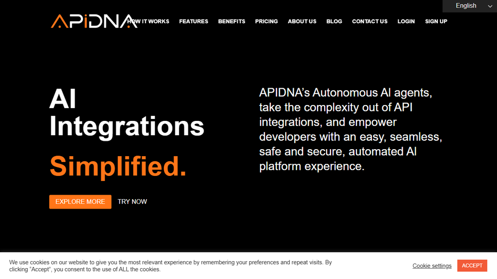 APIDNA is a cutting-edge platform that revolutionizes API integrations by harnessing the power of autonomous AI agents. This innovative solution aims to streamline and secure the complex process of connecting disparate systems and applications, making it more efficient and accessible than ever before.