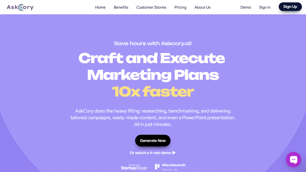 - AI-Driven Marketing Plan Generation: AskCory.ai leverages artificial intelligence to understand your business objectives and target audience, then generates detailed, tailored marketing strategies. This includes identifying key channels, campaign ideas, and tactical approaches.