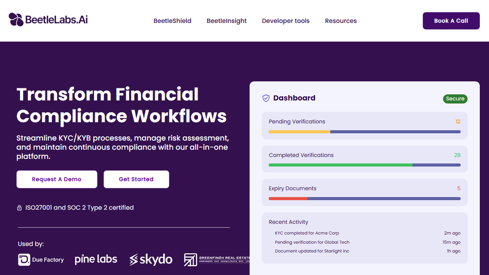 Beetle Labs' commitment to security is underscored by their ISO27001 and SOC 2 Type 2 certifications, assuring clients of robust data protection and operational integrity. The platform's user-friendly interface and customizable features make it a powerful tool for transforming financial compliance and customer engagement.