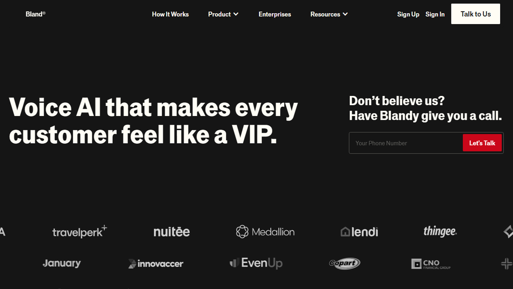 - Enterprise-Grade Solutions: Designed with the needs of large organizations in mind, Bland AI offers scalability, reliability, and robust security.