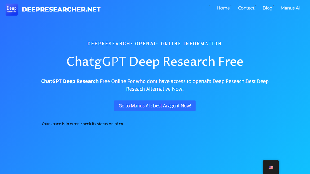 The website's meta description, "ChatGPT Deep Research Free Online For who dont have access to openai's ChatGPT Deep Reseach,Best Deep Reseach Alternative Now!" further emphasizes its role as a readily available, free alternative for advanced AI-powered research, aiming to be the "best deep research alternative now."