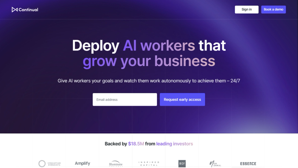 Continual empowers businesses to deploy autonomous AI workers that achieve specific business goals around the clock. The platform allows users to connect their existing tools, define objectives, and then delegate the execution to AI agents. This approach moves beyond simple automation to true autonomous execution, enabling businesses to scale their operations and drive growth more efficiently.