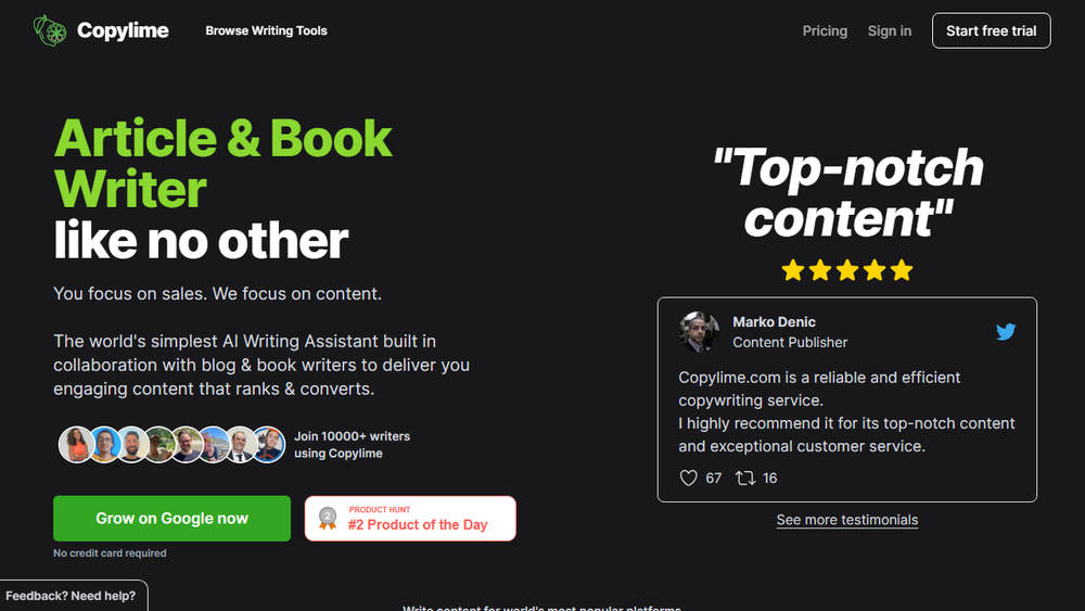 - Product Hunt Launch: Copylime has actively engaged with the community, including a launch on Product Hunt, indicating a commitment to user feedback and continuous improvement.