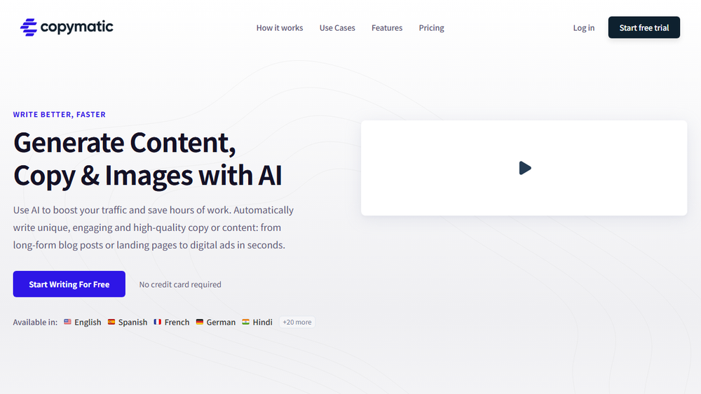 Copymatic is a powerful AI-driven platform designed to revolutionize content creation for businesses and individuals. It offers a comprehensive suite of tools to generate various forms of written content, from short-form ad copy to long-form blog posts and website content, all within seconds. The core functionality revolves around leveraging advanced AI language models to understand user input and produce unique, engaging, and human-quality text.