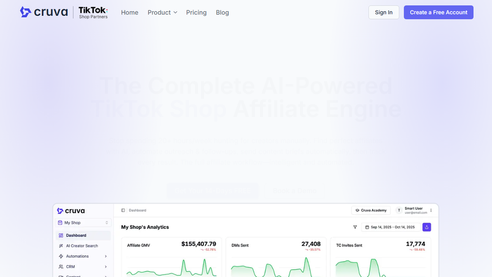 Cruva positions itself as an all-in-one solution, moving beyond simple outreach to encompass the entire affiliate lifecycle, from discovery and onboarding to campaign management and performance analysis. The emphasis on AI and automation suggests a focus on data-driven decision-making and operational efficiency for TikTok Shop merchants.
