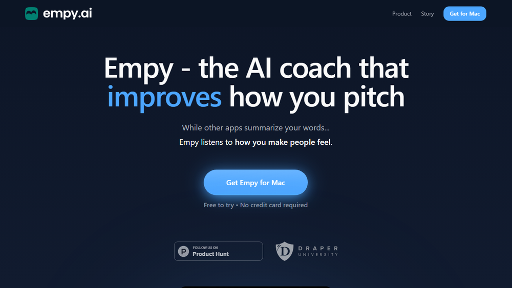 Empy is a cutting-edge AI-powered tool designed to revolutionize how founders present their pitches, particularly in investor calls. It provides real-time voice analysis, offering immediate feedback on crucial aspects of communication such as attention, contact, and clarity. This allows users to understand and improve their delivery on the fly, ensuring they make the best possible impression during high-stakes interactions.