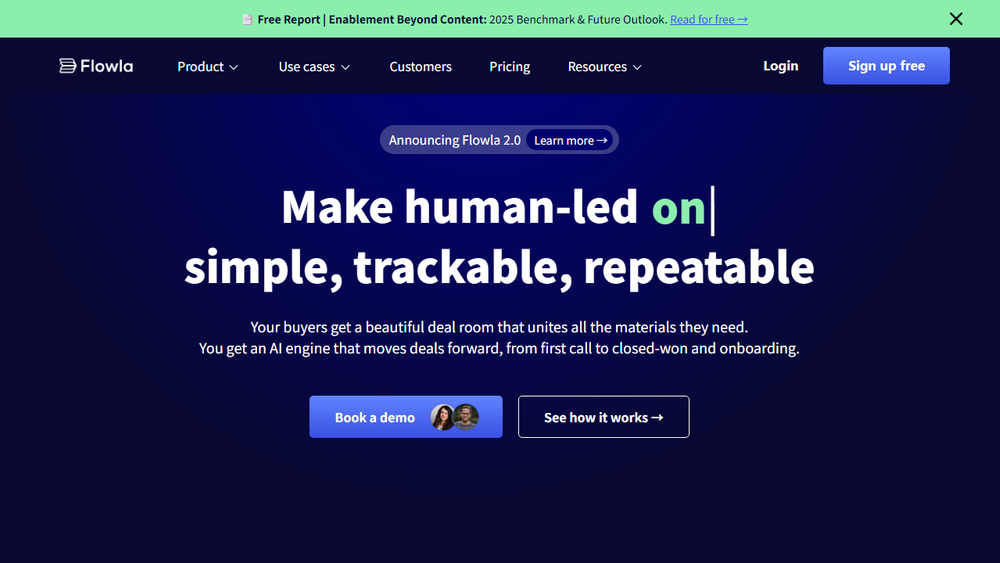 Flowla positions itself as a solution to the common problem of deals dying in the post-demo phase due to a lack of clarity and follow-through. By centralizing information and automating key processes, it empowers sales and CS teams to manage revenue processes end-to-end more effectively.