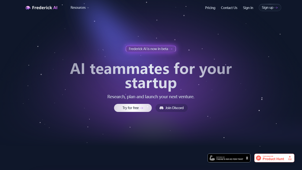 Frederick AI operates on a simple yet powerful principle: leverage AI to augment human capabilities. Users can input their startup ideas, and the AI will process this information to provide market insights, strategic plans, and even generate initial marketing assets. The platform's intuitive interface allows for easy delegation of tasks to AI teammates, fostering a dynamic and productive workflow. The community features further enhance the startup journey by connecting users with peers and potential collaborators.
