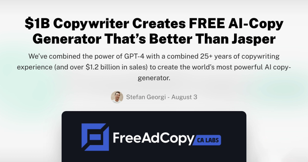 Generate world-class ad copy in seconds with this free AI tool, outperforming Jasper.