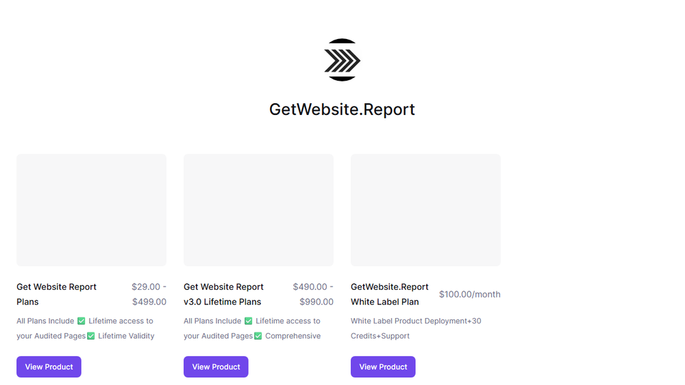 GetWebsite.Report offers flexible plans to suit different needs and budgets. The "Get Website Report Plans" range from $29.00 to $499.00, providing a scalable solution for various levels of analysis. For those seeking a more comprehensive, long-term solution, the "Get Website Report v3.0 Lifetime Plans" are available from $490.00 to $990.00, offering extensive features and lifetime access. Additionally, a "GetWebsite.Report White Label Plan" is offered at $100.00/month, catering to agencies or businesses that wish to rebrand the service for their own clients, including product deployment, credits, and dedicated support.