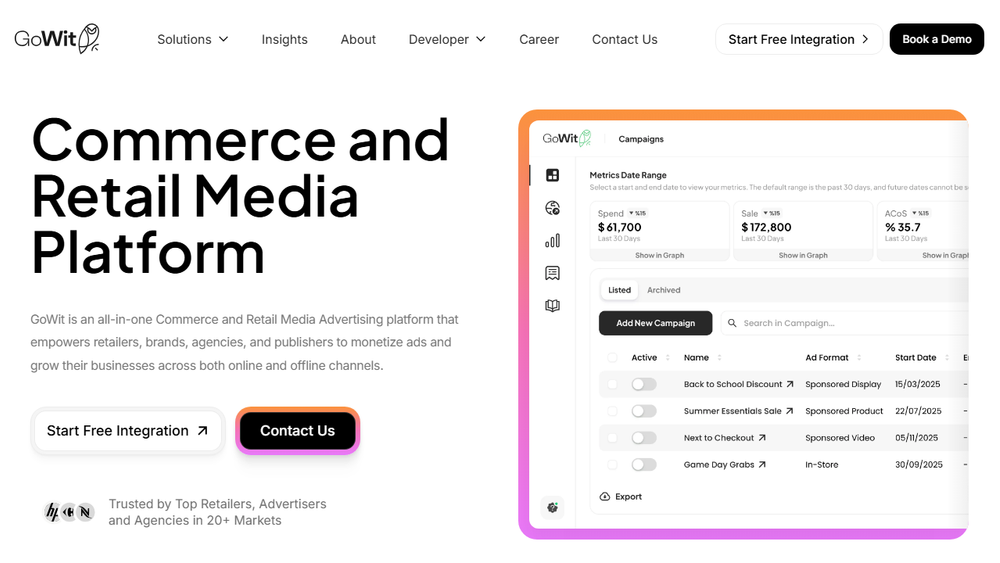 GoWit positions itself as an essential partner for businesses looking to navigate the evolving landscape of retail media and capitalize on the opportunities presented by omnichannel advertising. The platform's focus on data, optimization, and privacy makes it a compelling solution for driving both immediate sales and long-term brand building.