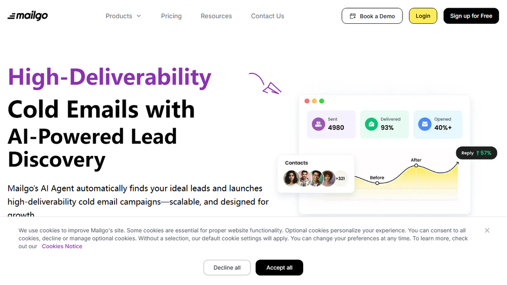 Mailgo is an AI-powered cold email platform designed to help businesses scale their outreach efforts and cut marketing costs. It leverages AI to discover ideal leads and automate the launch of high-deliverability cold email campaigns. The platform emphasizes improved open rates and overall growth for its users.