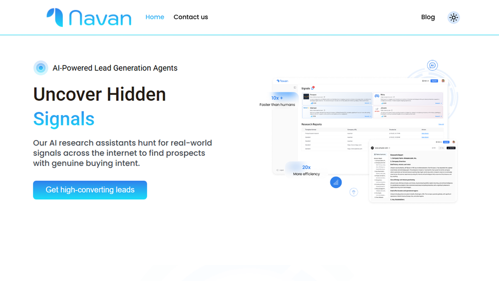 Navan.ai provides advanced AI-powered research assistants designed to revolutionize lead generation for B2B businesses. The platform's core functionality revolves around uncovering hidden signals across the internet, identifying prospects with genuine buying intent. These AI agents meticulously scan vast amounts of data to pinpoint valuable insights, enabling sales and marketing teams to focus their efforts on the most promising leads.