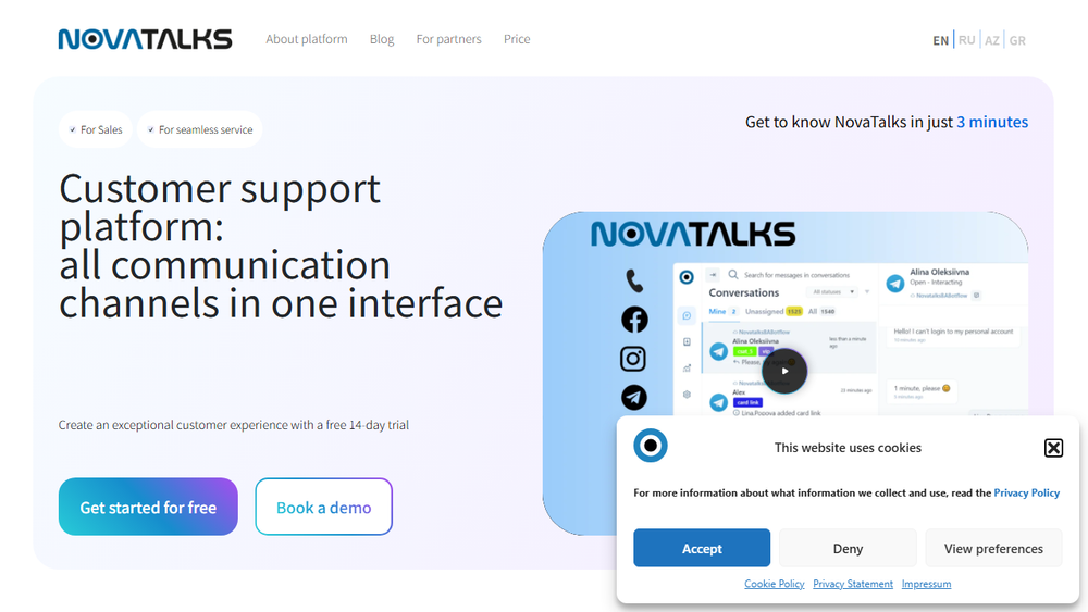 NovaTalks.AI presents itself as the ultimate omnichannel software solution designed to empower businesses by revolutionizing their customer support and sales operations. The platform aims to provide a seamless and unified experience for both businesses and their customers by consolidating all communication channels into a single, intuitive interface. This approach is crucial in today's multi-channel communication landscape where customers interact with businesses through various touchpoints, including live chat, email, social media, messaging apps, and phone calls.