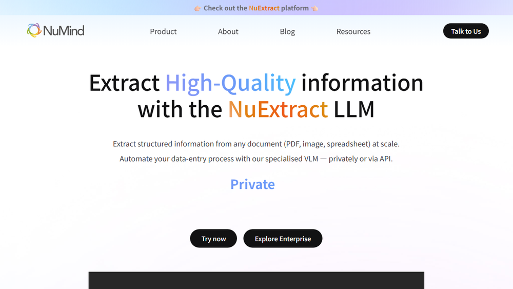 NuMind positions itself as a superior solution for information extraction due to its advanced VLM capabilities, which lead to higher accuracy and a lower hallucination rate compared to other LLMs and VLMs. The ability to handle diverse document types and offer flexible deployment options (private or API) further enhances its appeal. The platform's focus on automating data entry directly addresses a significant pain point for many businesses, promising increased efficiency and reduced operational costs.