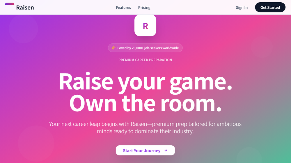 Raisen aims to be an indispensable tool for anyone serious about advancing their career in today's competitive landscape. By harnessing the power of artificial intelligence, it empowers users to present their best selves and achieve their professional aspirations.