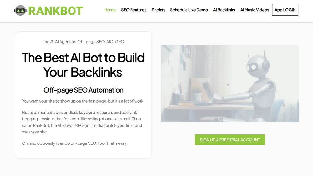 - AI-Generated Backlinks: RankBot automates the creation and management of high-quality backlinks, a crucial factor for search engine ranking. It handles the entire process, from identifying opportunities to brokering and managing links, ensuring they are valuable and beneficial for SEO.