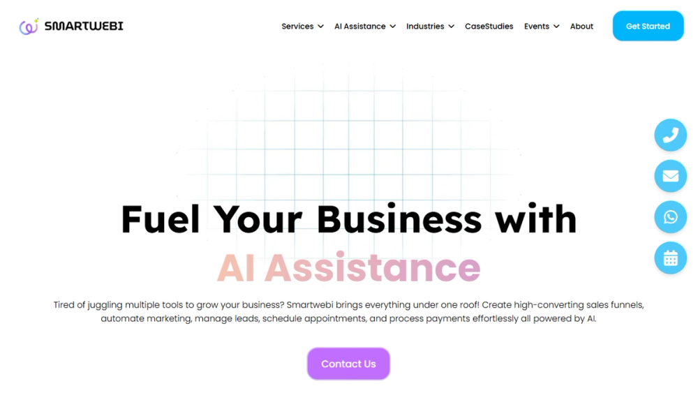 The platform is designed for a wide range of users, from small businesses looking to scale their operations to larger enterprises seeking to optimize their existing processes. Small business owners can benefit from the all-in-one nature of SmartWebi, consolidating essential tools into a single, user-friendly interface. Marketing professionals can leverage the advanced automation and analytics to drive more effective campaigns. Sales teams can improve their efficiency and close more deals with the intelligent CRM features. Customer support agents can provide faster and more personalized service with the AI Voice Assistant and integrated CRM data.