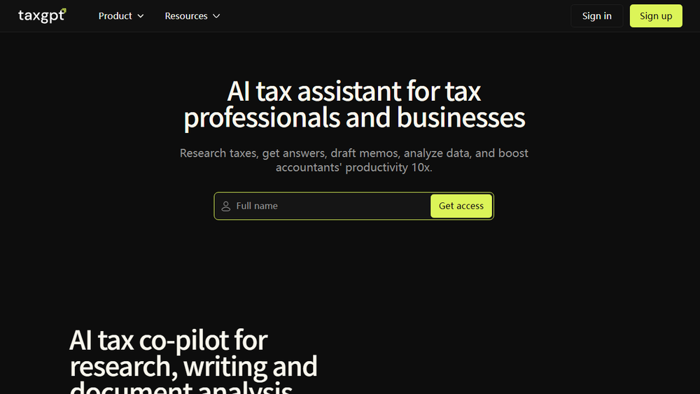 - AI Co-Pilot for Tax Professionals: TaxGPT acts as a co-pilot for accountants and tax professionals, assisting with complex tax questions, research, and analysis. It's designed to increase efficiency by up to 10x, allowing professionals to handle more clients and complex cases with greater ease.