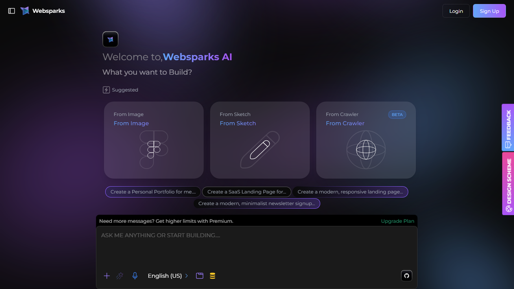 - Full-Stack Development: Websparks AI is capable of building complete applications, encompassing both the frontend (user interface) and the backend (server-side logic, databases, APIs).