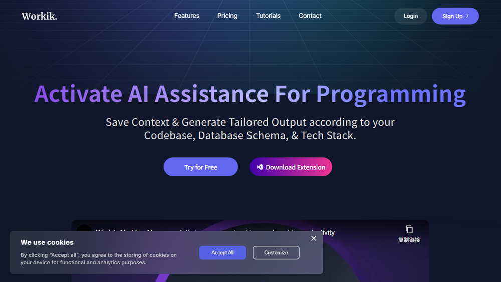 Workik is a powerful AI-powered platform designed to revolutionize code development for both backend and frontend engineers. It leverages context-driven AI assistance to generate tailored code for a wide array of tasks, including frontend development, backend logic, database management, API creation, and infrastructure setup. The core innovation lies in its ability to understand and utilize pre-defined context, allowing developers to customize the AI's behavior based on their specific programming style, database architecture, project requirements, and coding standards.
